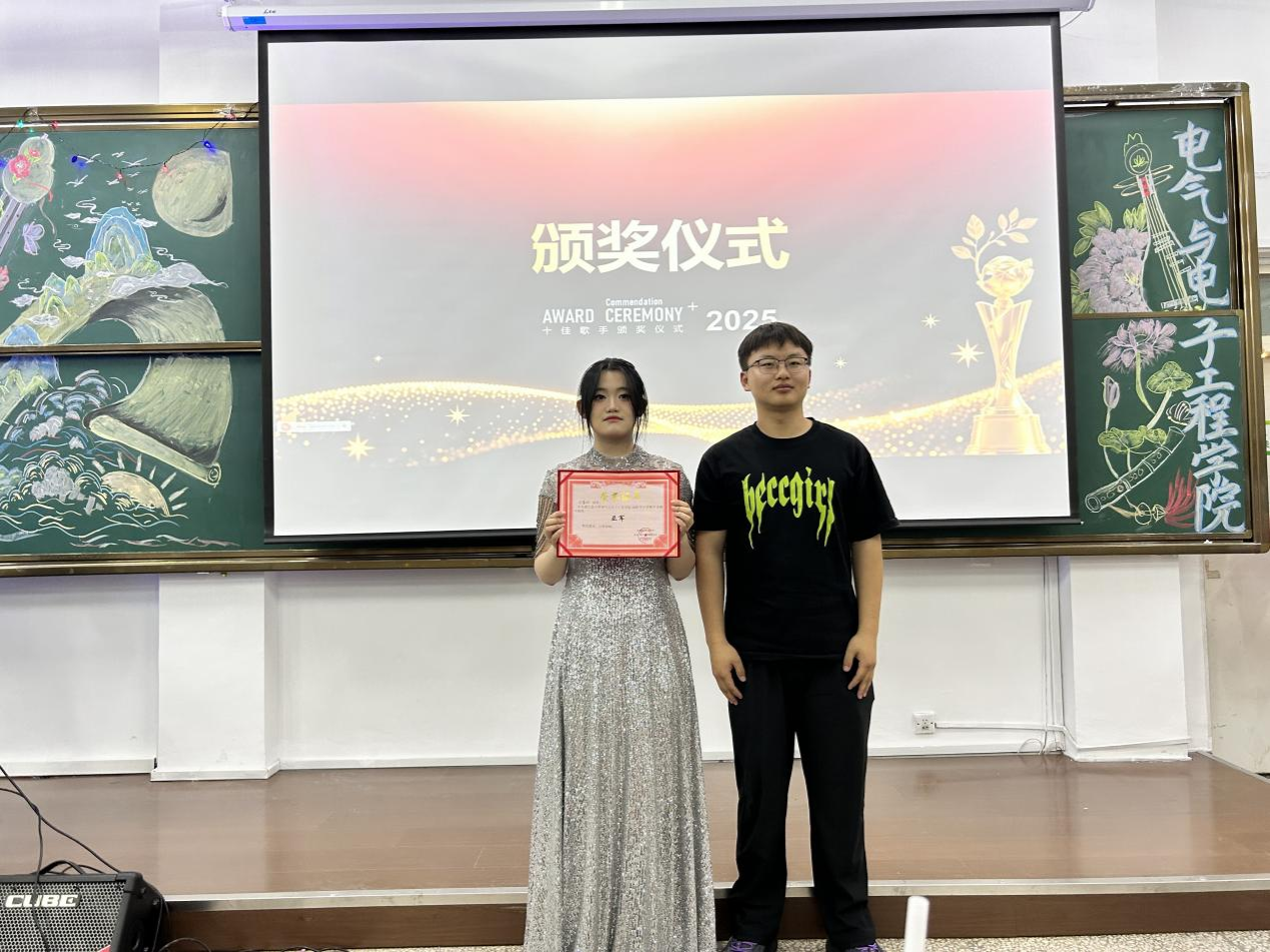 学生会主席李昊一为亚军赵蔷玥颁奖