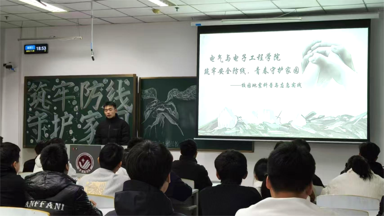 本网讯(通讯员 卢佳雪 贺健庭)为普及防震减灾知识,筑牢校园安全防线,11月30日,电气与电子工程学院在科研楼2312举办“筑牢安全防线,青春守护家园”校园地震科普与应急实践活动。