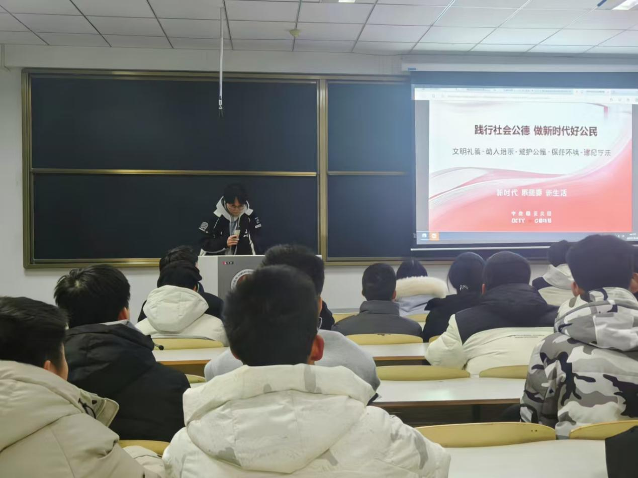 活动以《新时代公民道德建设实施纲要》为核心内容,通过案例分析的形式,帮助同学们明晰公德边界、深化责任认知。现场同学们认真听讲、积极分享,学习氛围浓厚。