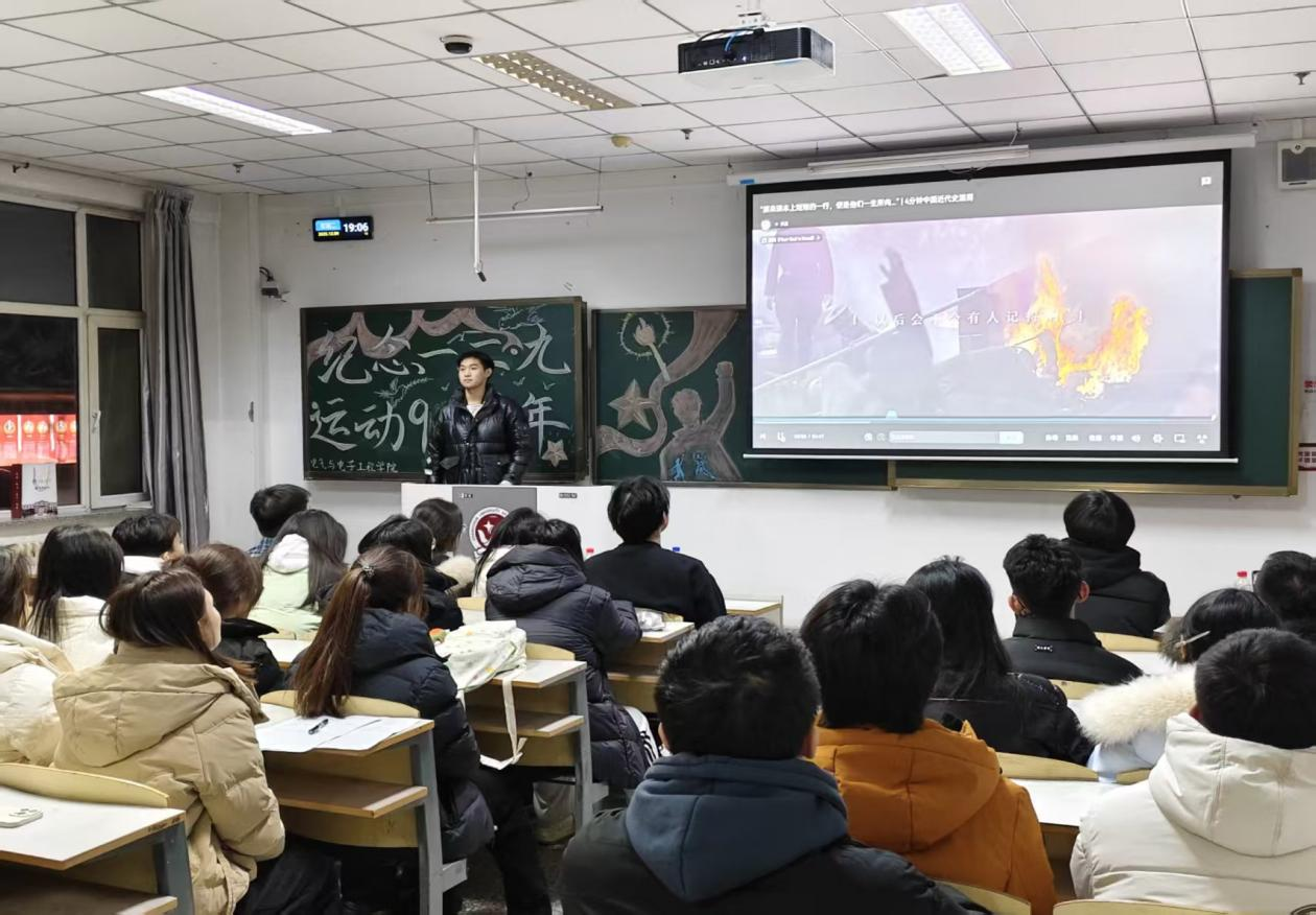 本网讯(通讯员 李柯欣) 为加强爱国主义教育,纪念“一二·九”运动90周年,引导青年学生铭记历史、勇担使命,12月9日,长春工业大学电气与电子工程学院在科研楼2104组织开展了纪念“一二·九”运动主题团日观影活动。