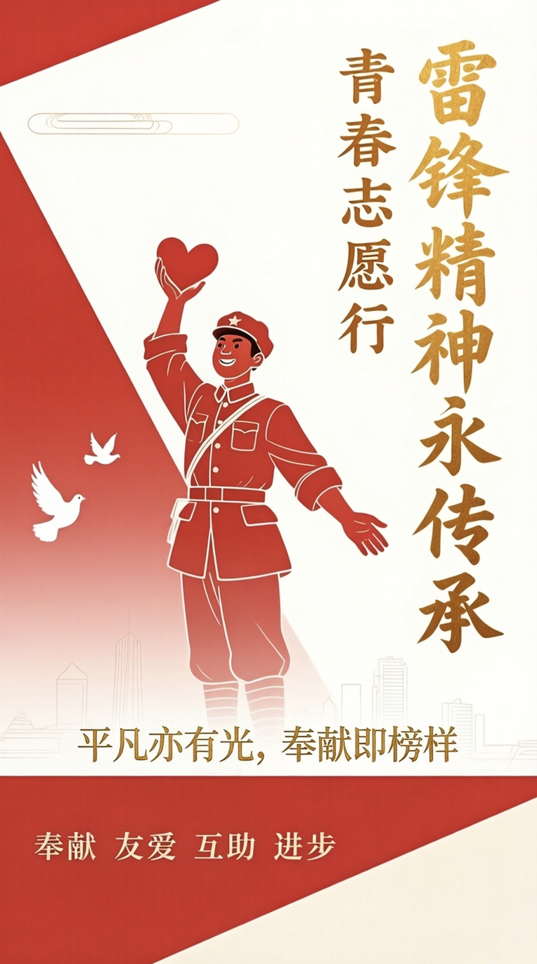 本网讯(通讯员 李柯欣)为进一步弘扬雷锋精神,培育和践行社会主义核心价值观,丰富校园文化生活,电气与电子工程学院组织开展学雷锋主题作品征集活动。活动面向全院学生征集海报设计、短视频等作品,引导广大青年学生以艺术形式感悟雷锋精神、传递青春正能量。