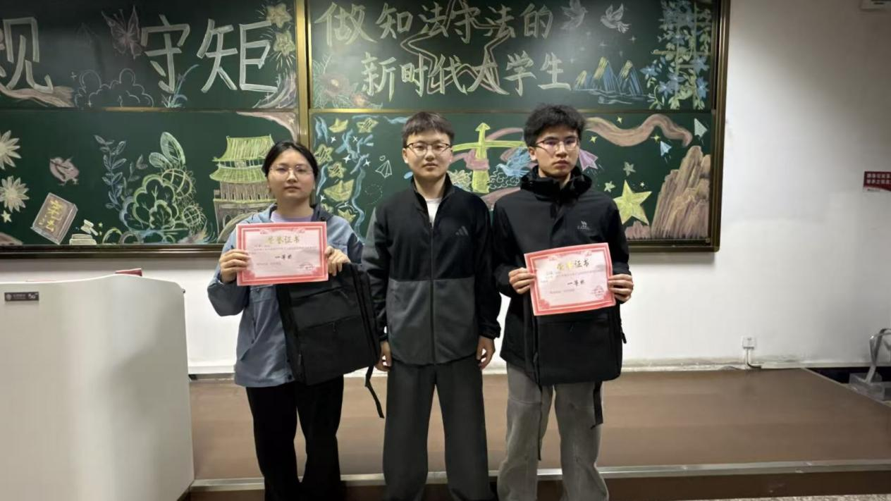 竞赛成绩当场公布,由工作人员统一统计、核对并评定获奖人员。随后举行颁奖仪式,为获奖学生颁发荣誉证书,激励大家勤学法律知识,争做守法用法的新时代青年。