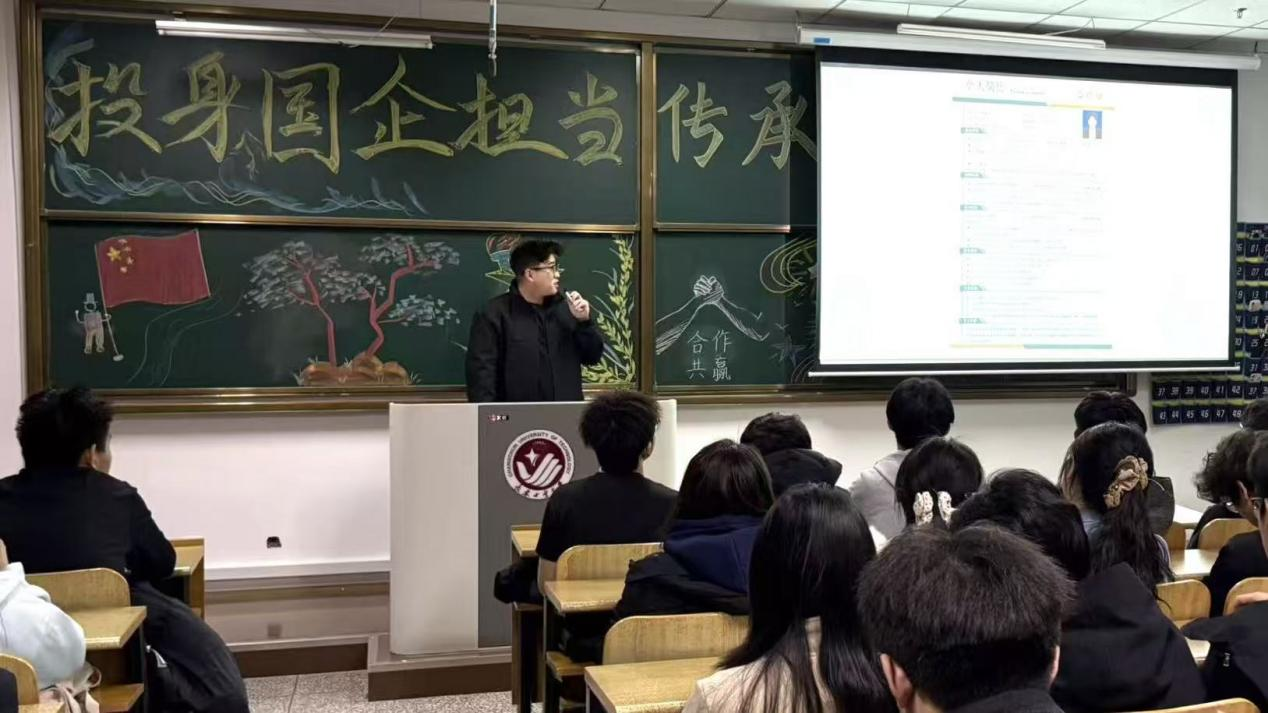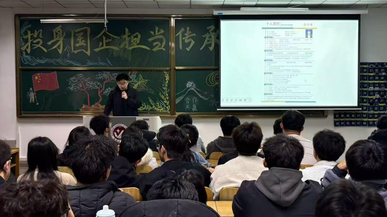 宣讲会上,蒋诚俊以“求职路上的经验与思考”为主线,结合自身求职经历与国企就业心得,为在场同学细致讲解求职筹备的各类实用技巧与核心要点,分享内容贴合电气学子求职实际。