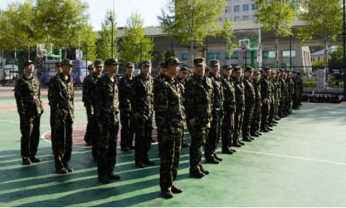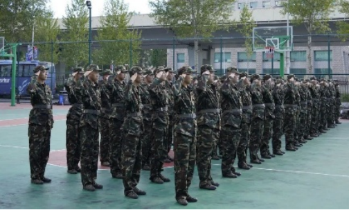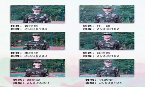 烈日下,大一新生身着笔挺迷彩服,衣摆无褶、帽檐齐平、腰带束紧,军容严整。站姿上双肩后张、腰背笔直、手贴裤缝,汗滴落仍纹丝不动,显自律,亦彰学院 “砺行求实” 精神。