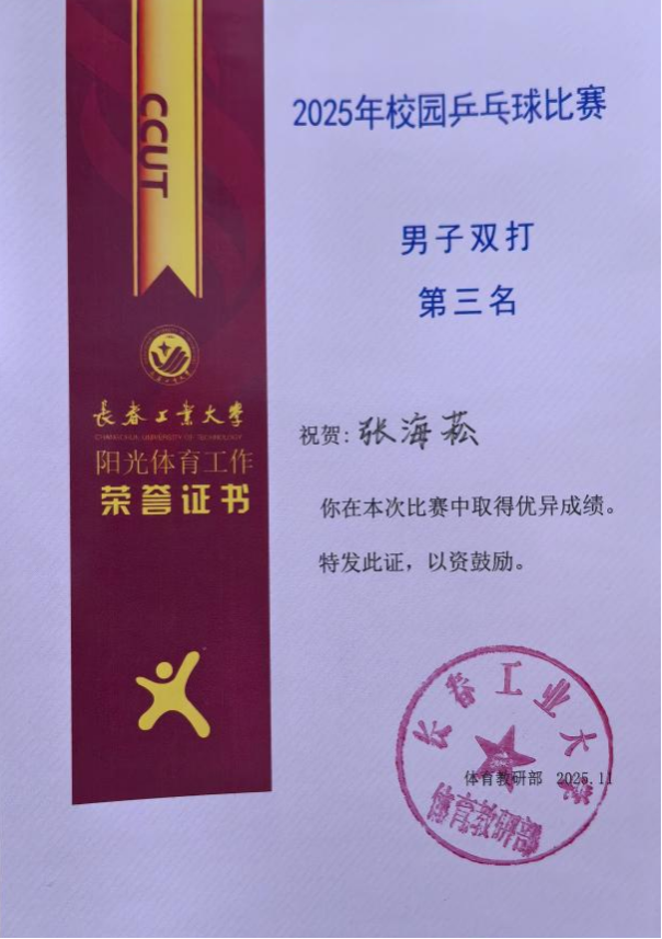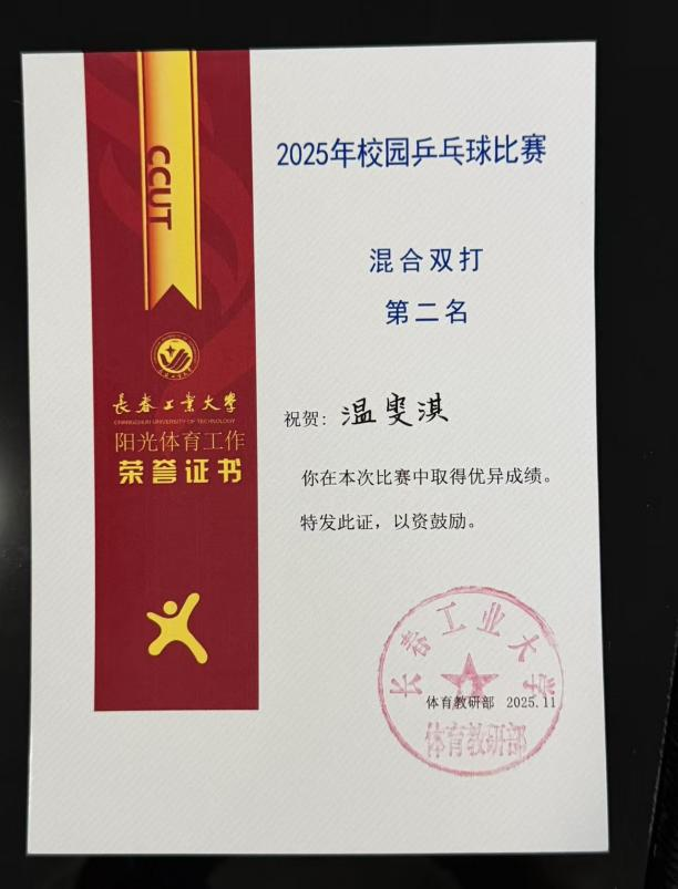 本网讯(通讯员 张纹绮 刘梦雪)11月30日,长春工业大学2025年校园乒乓球比赛在北湖校区圆满落幕,电气与电子工程学院队员们秉持“团结拼搏、奋勇争先”的精神,凭借精湛球技与顽强斗志斩获多项荣誉,充分展现了电气与电子工程学院学子的青春风采。