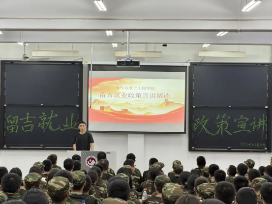 为号召大学生留吉扎根,助力吉林振兴,贡献青春力量,9月25日,电气与电子工程学院在综合二阶梯教室举办留吉就业政策宣讲报告会。