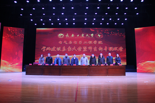 新闻网讯(通讯员 高博)岁末已至,新年将临,为表彰2017年度在学院学风建设工作中表现优异的集体和个人,同时师生共庆元旦佳节。2017年12月27日中午11时,电气与电子工程学院 南湖校区大学生活动中心隆重召开学风建设表彰大会暨“芳华电气 执梦远航”师生新年联欢会。出席大会的领导有学校党委副书记李雁冰,教学质量监控与评价中心常务副主任张宝昌,学生工作部部长周文军,研究生工作部部长郭志伟,校团委书记仲崇利,以及学院全体班子成员。学院全体教师,部分本科生、研究生参加了本次活动。