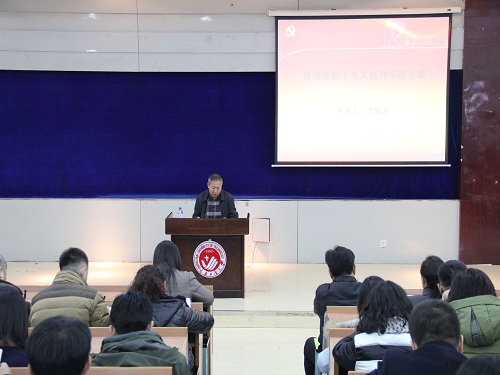 新闻网讯(通讯员 高博)为深入贯彻党的十九大精神。11月22日,电气与电子工程学院于南湖校区综合三教室举办宣讲党的十九大精神专题党课。本次党课由校党委副书记李雁冰主讲,学院全体教工党员,14、15级学生党员及部分入党积极分子参加本次党课。