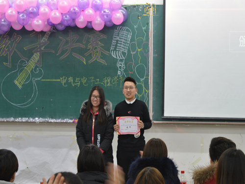 新闻网讯(通讯员 苗娟涓 张瑶)为丰富课余生活,展现我院大学生的精神风采。11月28日晚6时,电气与电子工程学院2017级十佳歌手总决赛于北湖校区西阶101室隆重拉开帷幕。各学院辅导员助理老师,我院辅导员助理李晓晗、时万旭,校学生会主席时磊,计算机科学与工程学院文艺中心主任计红雨出席本次活动。