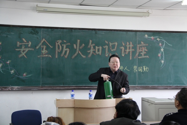 | (通讯员 赵爽)为提高全院教职员工消防安全意识和学院消防安全“四个能力”建设,有效遏制火灾事故的发生。3月23日下午1点半,学院特邀我校保卫处裴国勤老师在主楼1401室开展安全知识讲座。