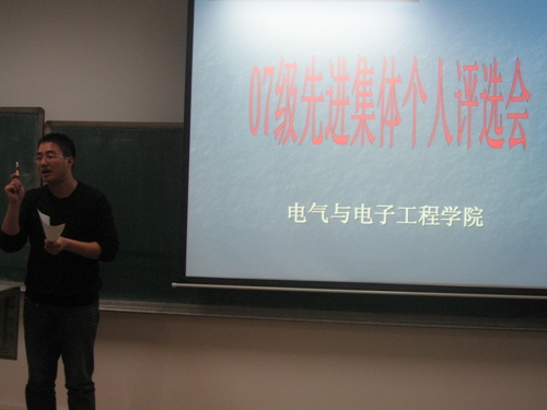 为了鼓励先进,配合学院2008年度学团表彰工作顺利开展。12月14日晚8:00,我院在教学科研楼201教室举行先进集体、个人评选会,辅导员赵爽老师和07级各班班长和团支书参加评选会。