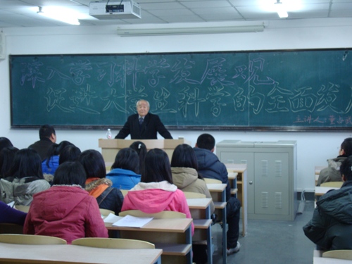 | 2008年11月17日,我院红旗社在主楼403会议室举办以“深入学习科学发展观,促进大学生科学全面发展”为主题的讲座,邀请学院关工委常务副主任董占武老师作辅导报告。讲座由学院学生党支部书记郑洪斌主持,学院学生支部全体党员和部分红旗社成员参加这次讲座。 这次讲座是我院开展深入学习实践科学发展观活动集中学习、调查研究阶段的一项重要举措。在一个小时的讲座中,董占武主任深入浅出,旁征博引,系统介绍了科学发展观产生的时代背景,阐明了科学发展观的深刻内涵,论述了把握科学发展观的十个基本点,提出了实践科学发展观,促进大学生科学的全面发展途径和要求。与会同志深受启发,表示要按照学校深入贯彻落实科学发展观的要求,努力把学习的体会和成果转化为成长成材的实际工作中,以便毕业后为祖国做贡献。 |