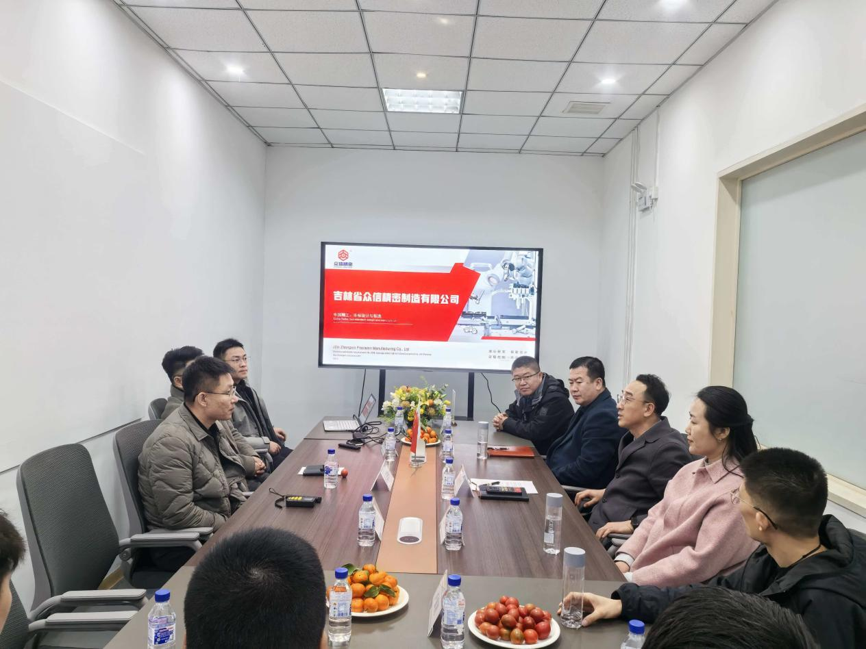 在吉林省众信精密制造有限公司,教师团队首先走进生产一线,实地参观企业核心生产设备与精密制造工艺流程,直观了解行业前沿技术应用与生产管理模式。参观结束后,校企双方召开座谈会,企业负责人详细分享了公司的创业历程、发展理念与成长经验,介绍了企业在精密制造领域的技术积累与市场布局,并结合岗位需求,对学院人才培养提出宝贵建议。双方就实践教学对接、就业岗位拓展、技术协同创新等方面达成多项共识。